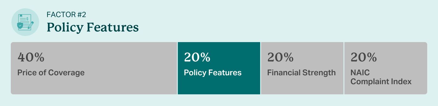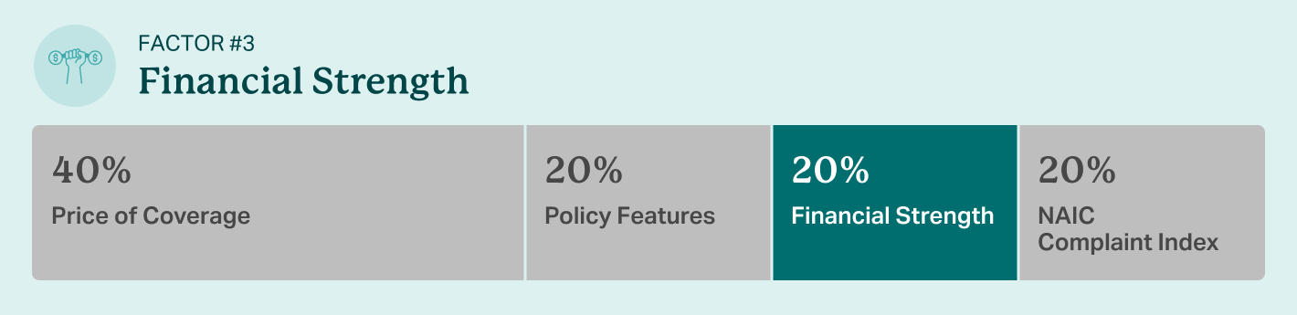 A company’s financial strength is based on its rating with A.M. Best. Read a full breakdown of the financial strength factor on our review methodology page.