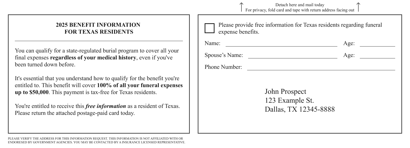 - Agents will appear at your door and attempt to sell you life insurance for final expenses.