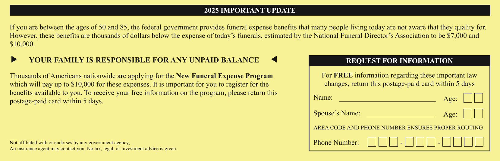You might be wondering- Why do they say “state regulated life insurance program to pay final expenses” if it’s a lie?